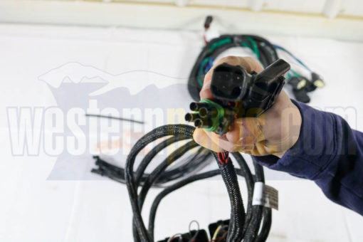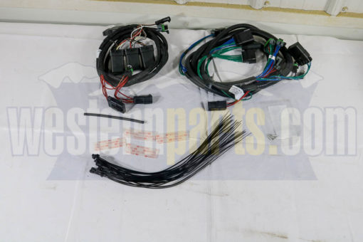 This harness kit serves as a critical electrical link within the plow system, connecting various components that require electrical power and signal transfer. The “plug-in” design highlights ease of installation, featuring pre-terminated connectors that allow for quick and secure hook-up without extensive wiring work.