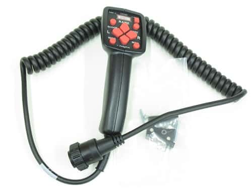 Western Plow Part # 96462 is the MVP CabCommand Hand-Held Controller, designed specifically for operating Western MVP V-plows. This ergonomic, hand-held unit provides comprehensive control over all plow functions, allowing the operator to efficiently manage the complex movements of a V-plow from the comfort of the vehicle cab.