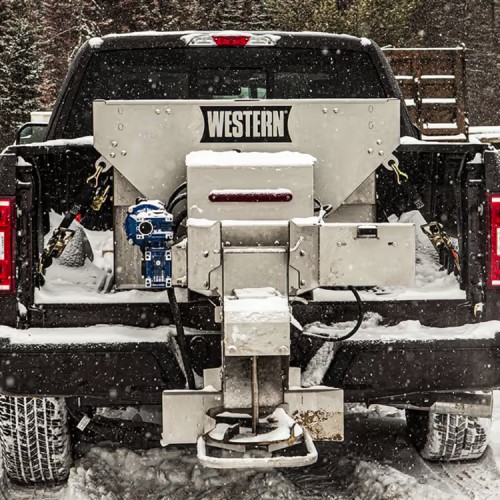 The WESTERN® Striker™ 0.7 and 0.35 cu yd stainless steel hopper spreaders offer the features and accessories that give you the performance, capabilities, and efficiency of larger WESTERN Striker hopper spreaders, but in a more compact size that’s better suited to handle smaller spaces and jobs. This salt and sand spreader has been designed to provide excellent material flow and delivery to the spinner.